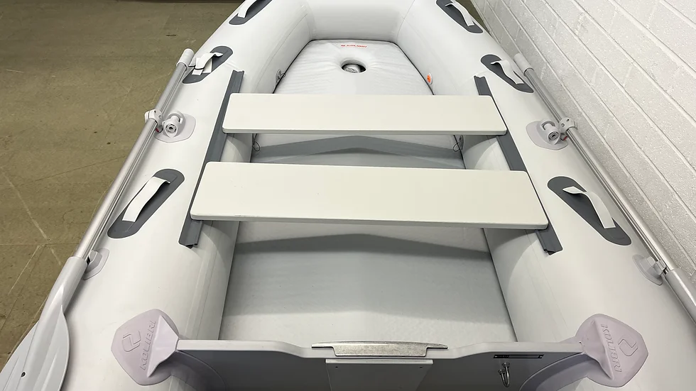 Inflatable boat KM-270DXL is the smallest “KOLIBRI” keel motor boat of the “Explorer” series. “KOLIBRI” KM-270DXL has smooth contours, increased cockpit, improved seaworthiness, stability and high loading capacity.